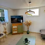 Villan har ett utrustat kök samt matplats och utomhusmatplats för självhushållning. Det finns också kylskåp, ugn och köksredskap i köket. Busshållplatsen Le Relais ligger också några meter bort från boendet.